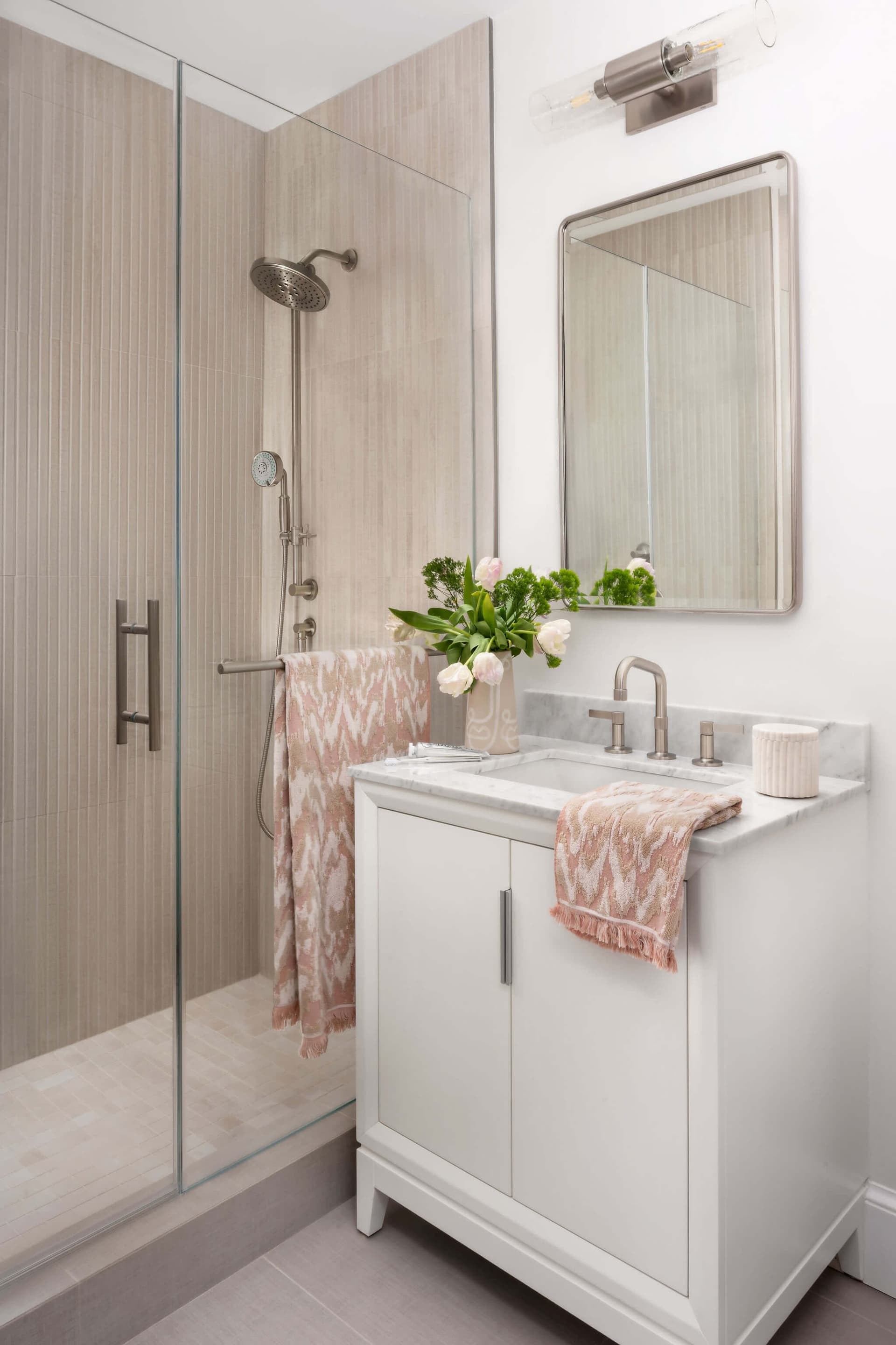 The secondary bathrooms are fresh yet classic, making the most of the tight spaces.