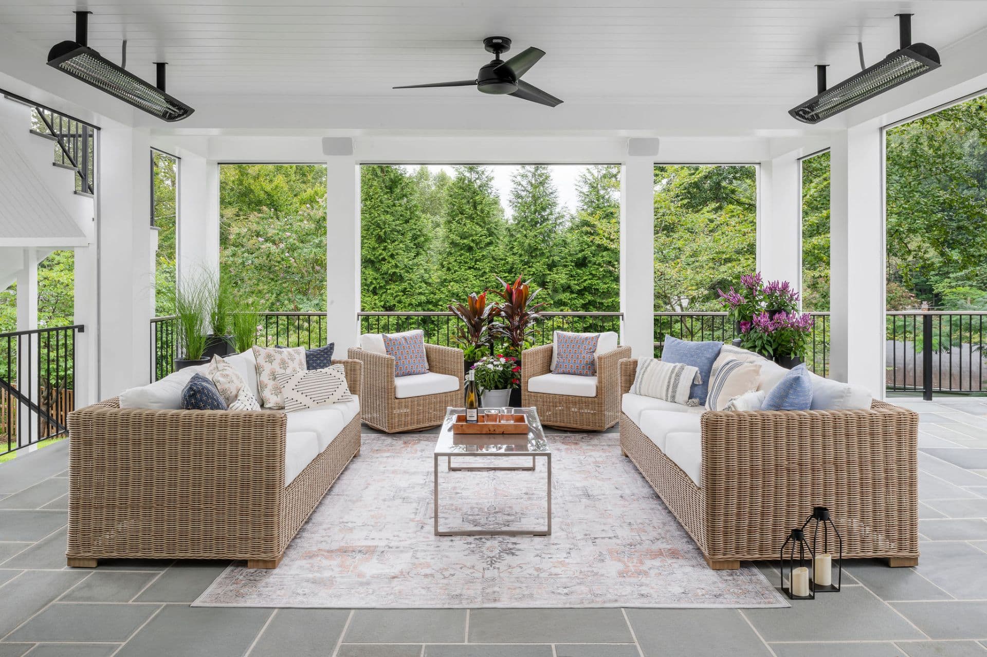 The lower screened in porch gives another area to relax anytime of year with motorized screens and Bromic Heaters.The upper deck features custom metal rails and plenty of area to grill and hang out.
