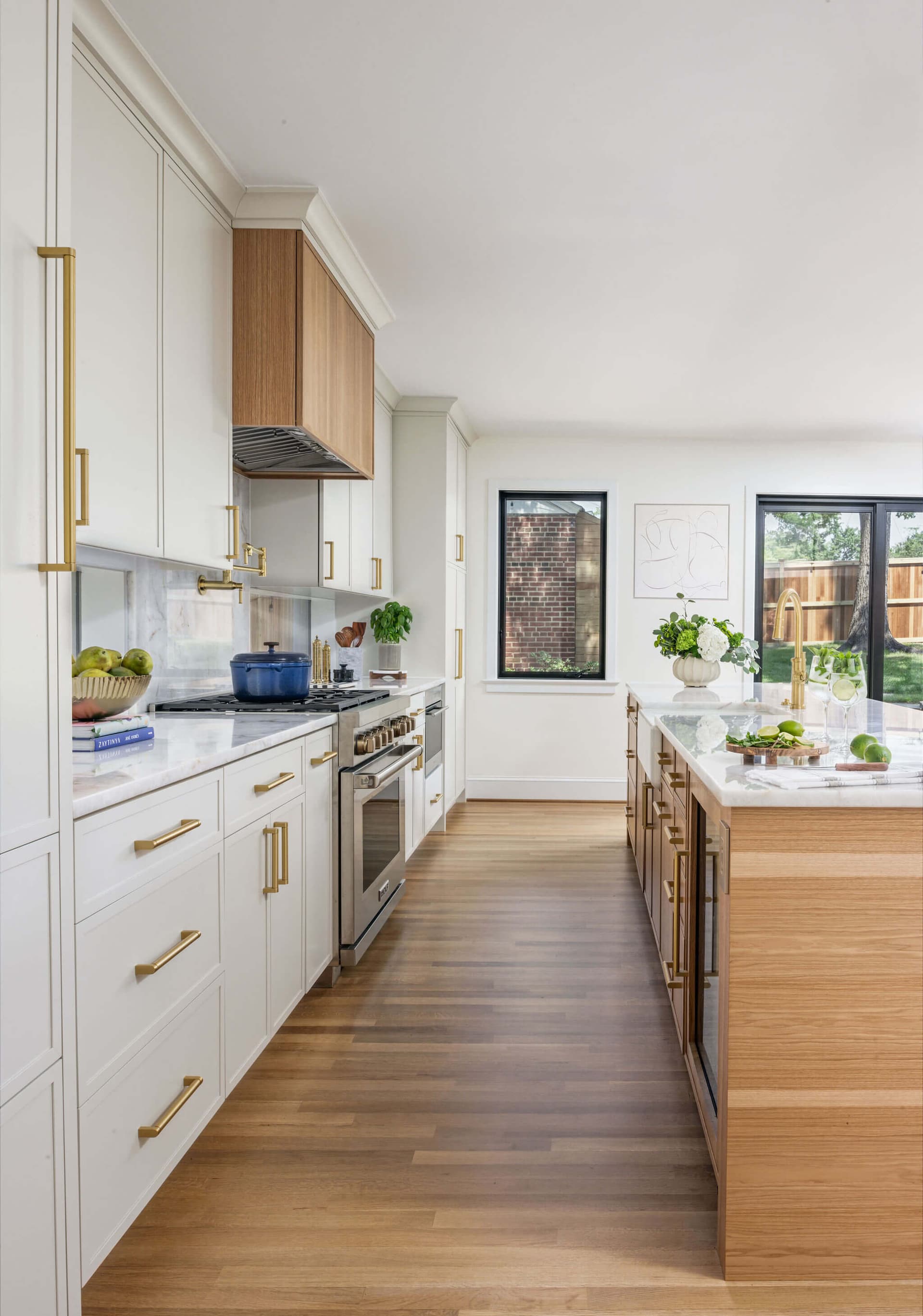 The exterior of the addition features stucco and nickel gap Boral siding, enhancing the refined contemporary look. The classic brick home was given maybe more than just a touch of modern, the result is a home that feels both updated and beautifully unified.